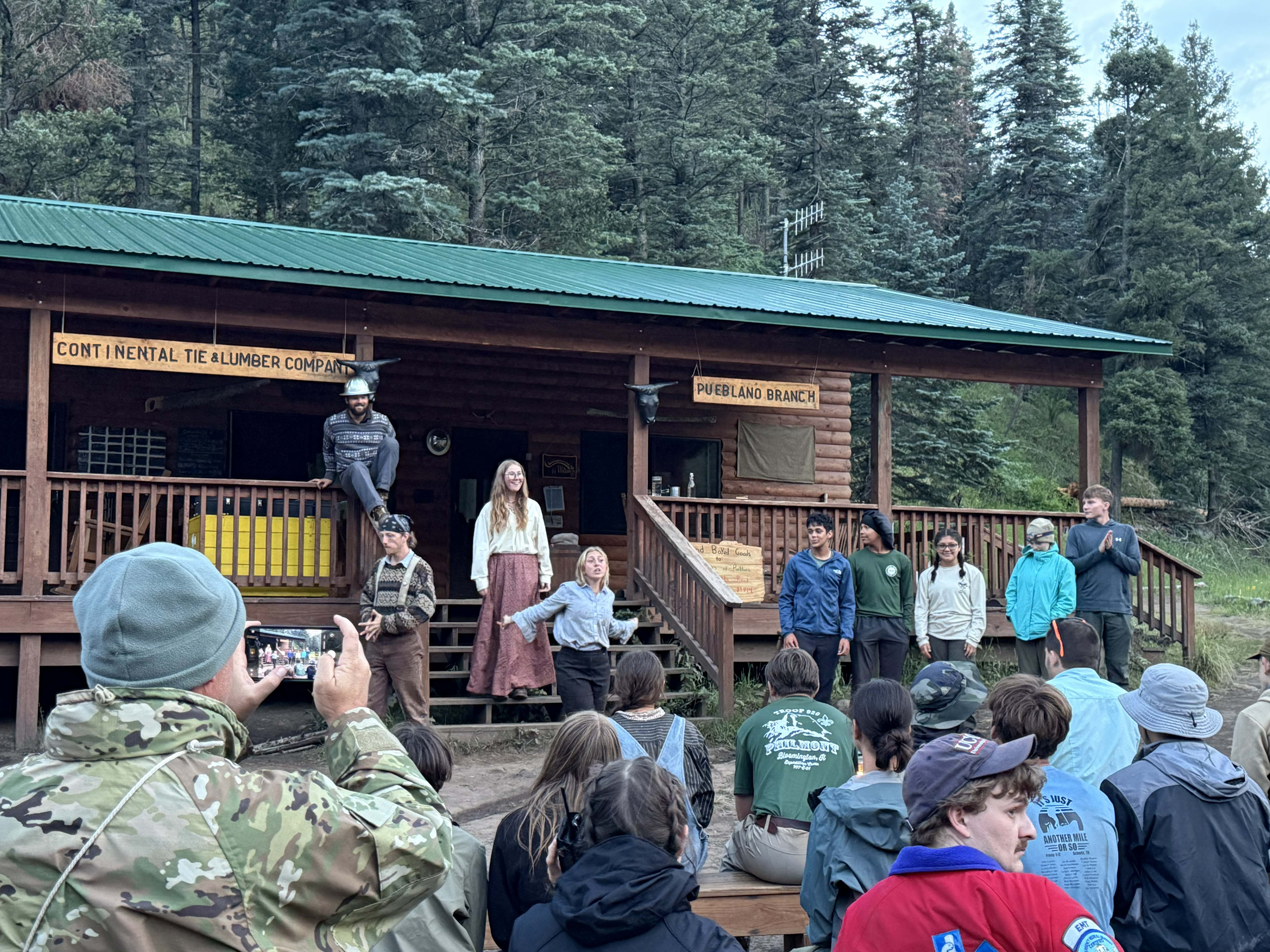 Philmont Scout Ranch is a large, rugged, mountainous ranch located near the town of Cimarron, New Mexico, covering 140,177 acres (219 sq mi; 567 km²) of wilderness in the Sangre de Cristo Mountains of the Rocky Mountains of northern New Mexico. The ranch, formerly the property of oil baron Waite Phillips and now that of the Boy Scouts of America, is a National High Adventure Base in which crews of Scouts and Venturers take part in backpacking expeditions and other outdoor activities. The most recognizable landmark is the Tooth of Time at 9,003 feet (2,744 m), a granite monolith protruding 500 feet (150 m) vertically from an east-west ridge. Check back in August for photos of our experiences.